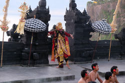 ![]() | ![]() | ![]() Kecak Dance in UluwatuKecak is a form of Balinese dance and music drama that was developed in the 1930s in Bali. There are no instruments, all the sounds are made by a choir of 70 men. |